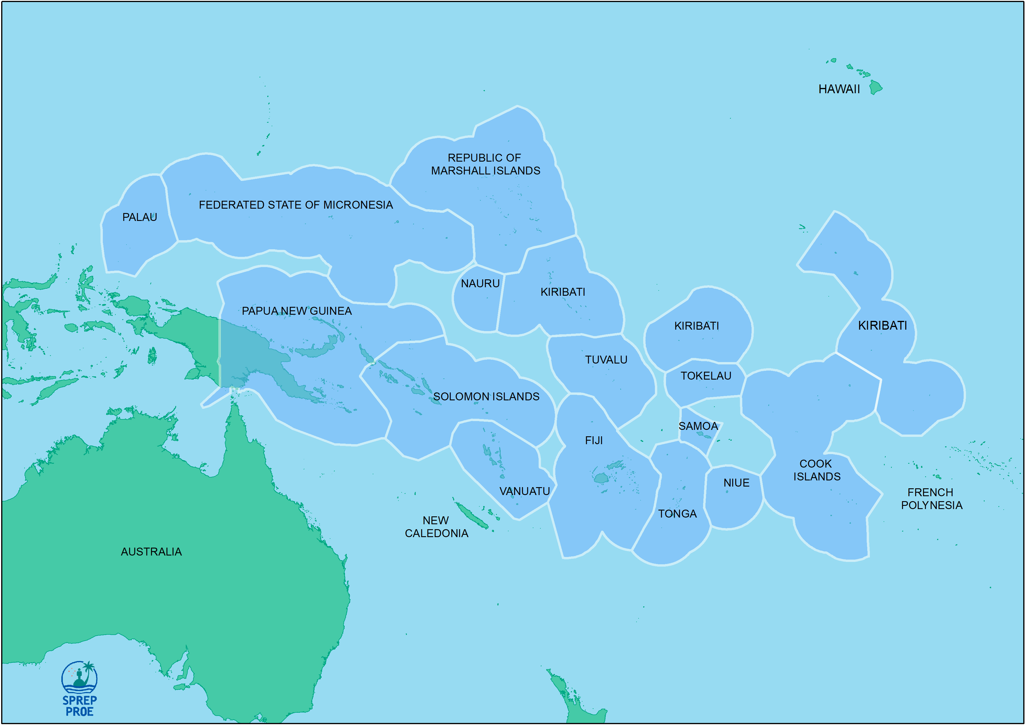 The SPREP ID map is low resolution (200KB) that shows SPREP member countries with their Exclusive Economic Zone (EEZ) boundaries developed by the GIS team at SPREP.